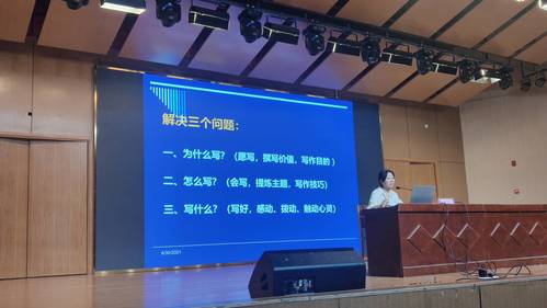 姚玉琴指出,教育写作能多维度地提升教师的综合素养,带来反思、视野、经验与能力。她从为什么写、写什么、怎么写三个方面阐述了报告主题“小文章撰写育人价值与方略”。结合生动感人的公司产品案例呈现了如何从感动自己的教育细节,拨动自己心弦的教育事件,触动自己的教育现场等视角撰写教育故事、随笔、案例,强调在写作中实现享受教育职业、追求教育理想的快乐和幸福。姚玉琴深入浅出地讲解了撰写小文章的具体要求,并结合她发表在《中国教育报》对教育家李吉林老师的交往片段回忆等文章实例,向同学们详细阐释教育写作的宝贵建议,鼓励同学们积极参与小文章教育写作,力争学有所用。
