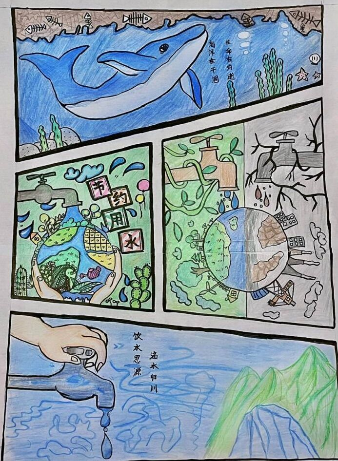 本次活动结合主题,本着“节约用水,俭以养德”的目的,把节水意识带到校园生活中来,得到了同学们的积极响应。参赛同学热情高涨,自主查找资料,紧紧把握“节约水资源,保障水安全”这一主题,围绕节水小窍门、节水新理念、用水小知识等内容构思创作,以手绘彩描的形式表达了对于水资源的珍视,设计了一幅幅主题鲜明、图文并茂、布局美观的漫画。通过评比,21小教3班王鹏佳,21幼管李玉婷,21青管曹雯雯等六名同学的作品精美别致,主题突出,主旨深刻,很好地诠释了节水用水的重要性,被评为优秀。