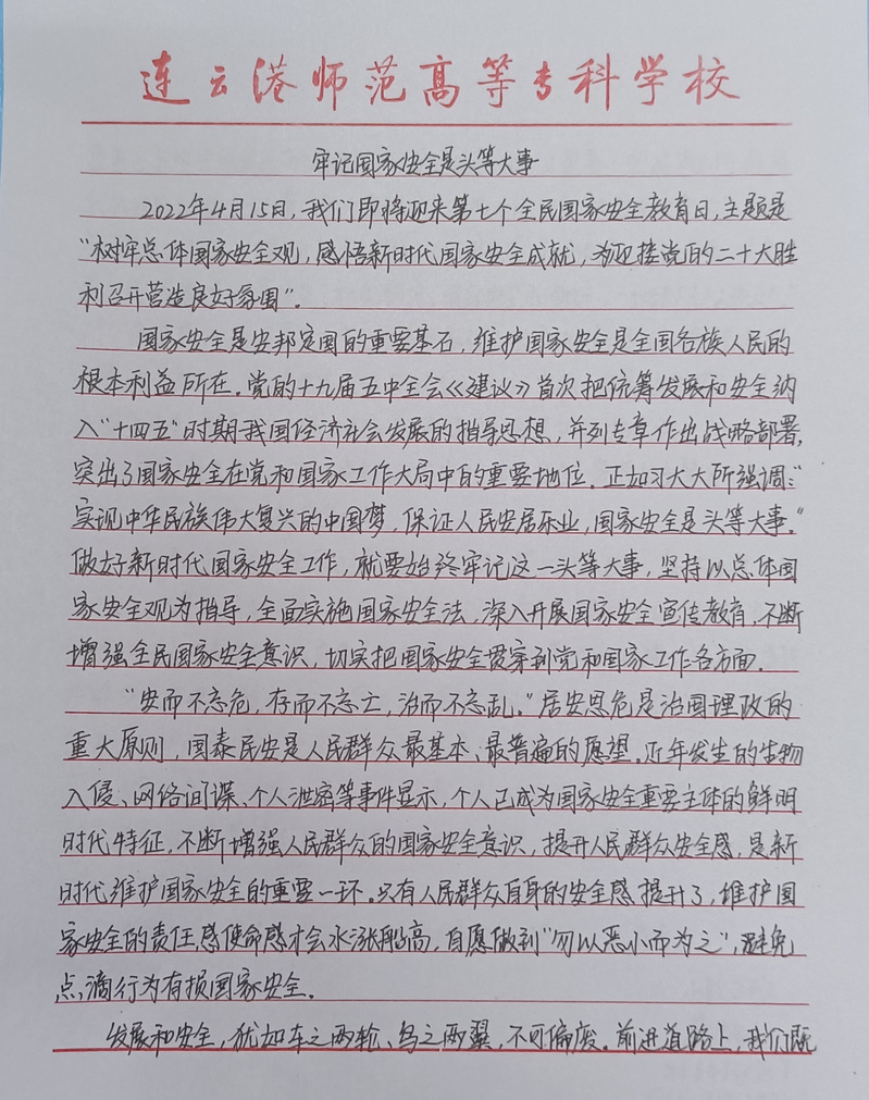 为切实增强国家安全意识与法治观念,夯实国家安全的社会基础,引导老员工认清国家安全形势,促使同学们了解和普及国家安全知识,提高防范意识和警惕性,谈球吧于4月6日至4月12日开展了“增强防范意识,维护国家安全”主题征文活动。