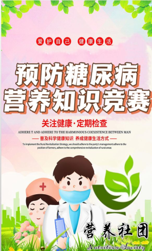 第十五个联合国糖尿病日之际,为了让大家进一步了解有关糖尿病知识,预防糖尿病,享受健康生活,2021年11月19日,谈球吧营养社团围绕“手挽手,心连心,共同预防糖尿病”主题,线上举行预防糖尿病营养知识竞赛,希望通过糖尿病慢性病防治宣传,提高同学们的健康意识。
