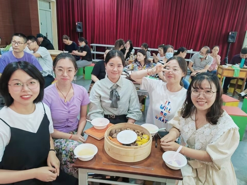 活动中,老教师向新入职教师传授教学经验,并提出殷切期望。随后带领新教师前往耕读园开展劳动实践,收获劳动基地里的累累硕果,领悟“园丁”的含义。老教师积极发挥示范作用,将“传帮带”落到实处。最后,全体教师一起用采摘来的果实制作了一大盘寓意着秋天收获的“大丰收”等食品,大家分享成果的同时相互送上了节日的美好祝福,场面欢快而温馨。