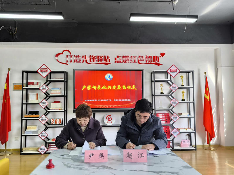 2023年11月17日上午谈球吧书记张志连、经理赵江一行7人,前往海州区社会组织孵化基地参加产学研基地共建签约仪式。