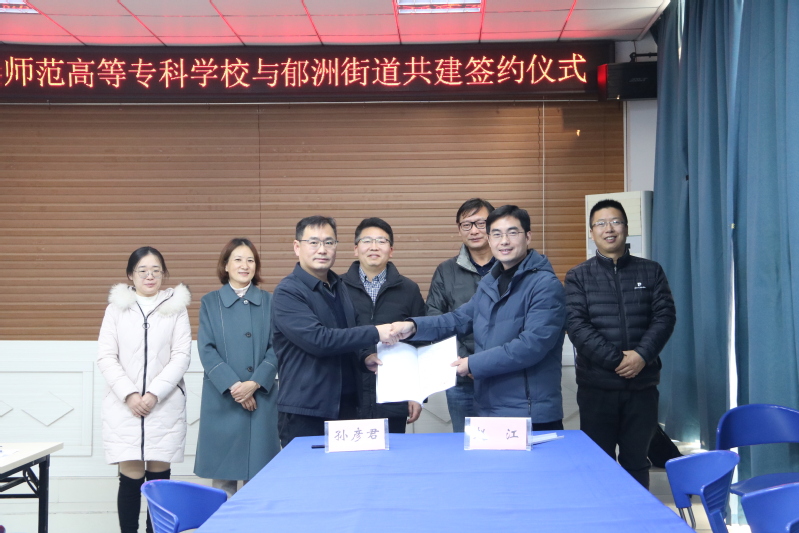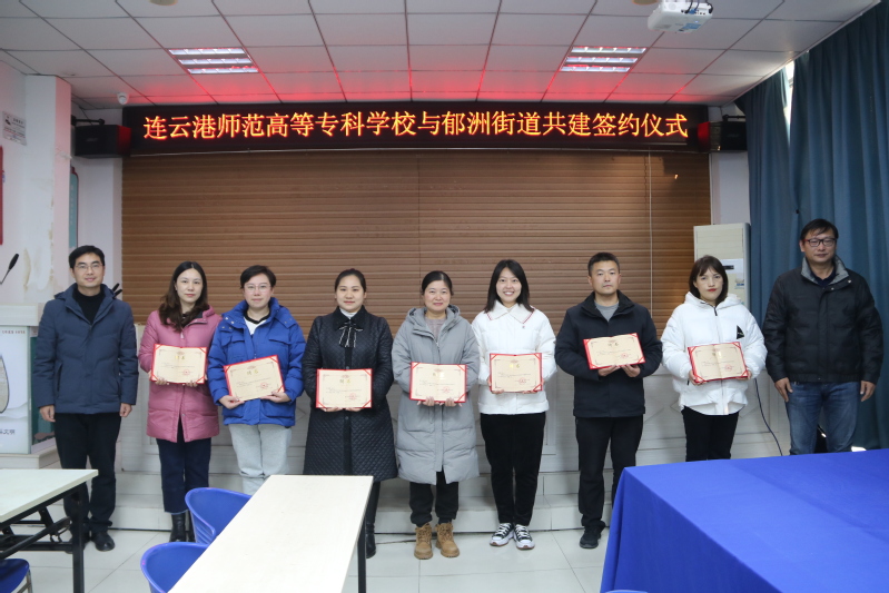 座谈交流结束后,赵江与孙彦君代表双方签订了合作共建协议,并向郁洲街道辖区内的七位社区书记颁发了见实习指导教师聘书。