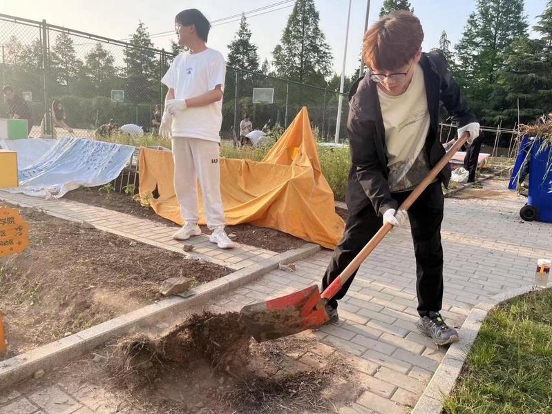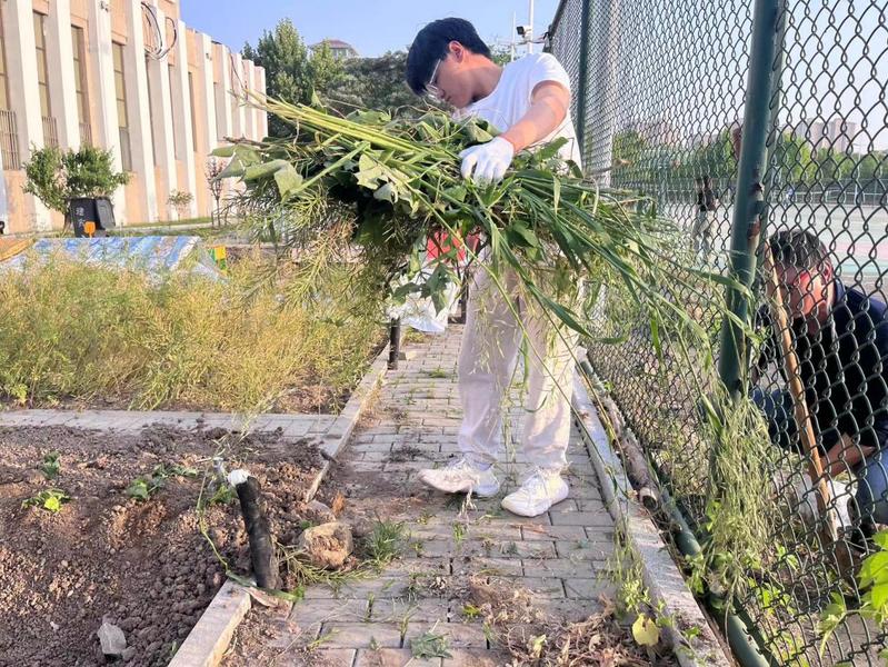 同学们领取除草工具后,分成多个小组,根据场地划分认领相应劳作区域。虽然杂草旺盛、根系牢固,但是大家热情高涨,戴着手套,握紧小锄头、小铁锹,低着头、弯着腰,拔草的、清扫的,分工明确,相互协作,干劲十足。烈日下,脸被晒得通红,汗水和着泥土的芬芳,没有人叫苦,没有人喊累,没有人嫌脏,反而青春蓬勃的面容上洋溢着劳动的喜悦和满足。作为公司“礼教育人”品牌建设的一部分,同学们在劳动实践体验过程中,展现了良好的个人劳作能力和优秀的团队协作友谊,展现了当代青年劳以修身、劳以立德的礼教风貌。
