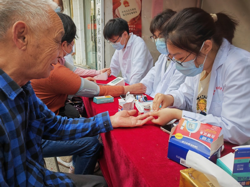 在检测过程中,志愿者们不仅为居民们耐心解答关于血糖的疑问,还根据检测结果提供了个性化的健康建议。他们可爱的笑容和专业的指导赢得了居民们的一致好评。