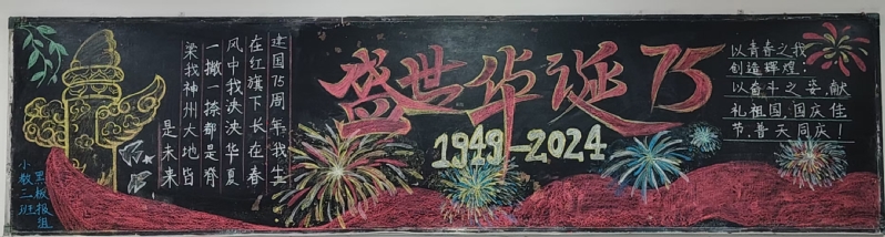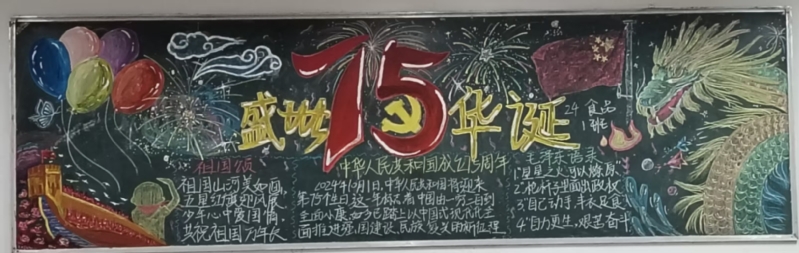 本次黑板报绘制和评比活动使同学们更深入地感受到新中国成立的历史意义和国家发展的伟大成就,激励和引领青年学子传承并发扬中华优秀文化,赓续红色血脉,厚植爱国情怀。相信在今后的学习和生活中,同学们将以更加饱满的热情和昂扬的斗志,为祖国的繁荣发展汲取奋进力量。