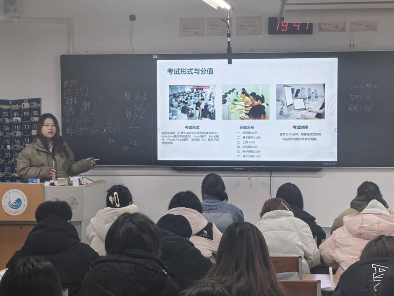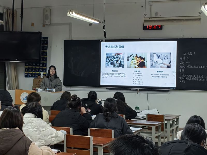 此次活动帮助了近五百名同学熟练掌握考试系统的操作技能,切实解决了他们在学业上的难题,传递了互助互爱的精神。员工干部们深入班级,用精心制作的 PPT,详细讲解了考试平台登录、题型切换、文件保存等关键操作流程。针对考试中常见的系统卡顿、误操作恢复等问题提供了切实可行的解决方案。讲解内容图文并茂,通过实例演示,让同学们能够直观理解操作要点,有效提升了同学们的操作熟练度与备考信心。