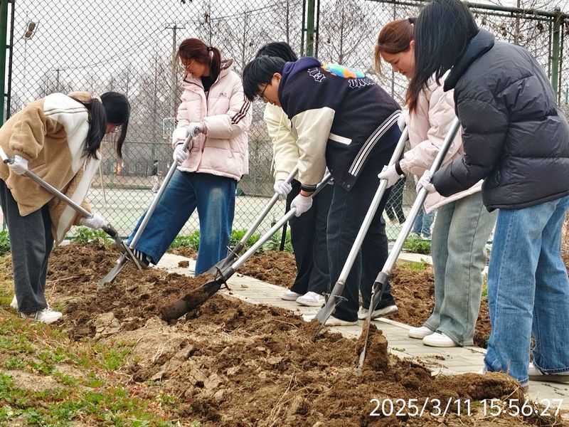 活动当天,谈球吧炬火先锋服务队的30名同学集合后分为两组,分别前往耕读园和劳动实践园开展劳动。在带队老师王英教授的指导下,同学们迅速投入到拔草、翻地、种植等劳动中。他们分工明确,相互协作,戴着手套、握着锄头、挥动着铁锹,展现出了极高的劳动热情和团队精神。经过两个多小时的辛勤劳动,两个园区内的杂草被清理干净,土地得到了有效的翻整,平整度与种植环境得到了显著提升。随后,同学们满怀期待地洒下了花籽,期待着春天的到来,花朵的绽放。