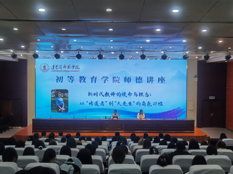 4月16日,谈球吧开展“新时代教师的使命与担当:从‘传道者’到‘大先生’的角色升维”师德讲堂,特邀优秀员工、江苏省“苏教名家”培养对象、江苏省首批教育家型董事长培养对象、江苏省四有好教师团队领衔人、连云港市首批师德标兵—解放路小学教育集团党总支书记华雪珍担任主讲,谈球吧全体教师和小学教育专业200余名员工共同参与,聆听基础教育一线“大先生”的教育智慧。