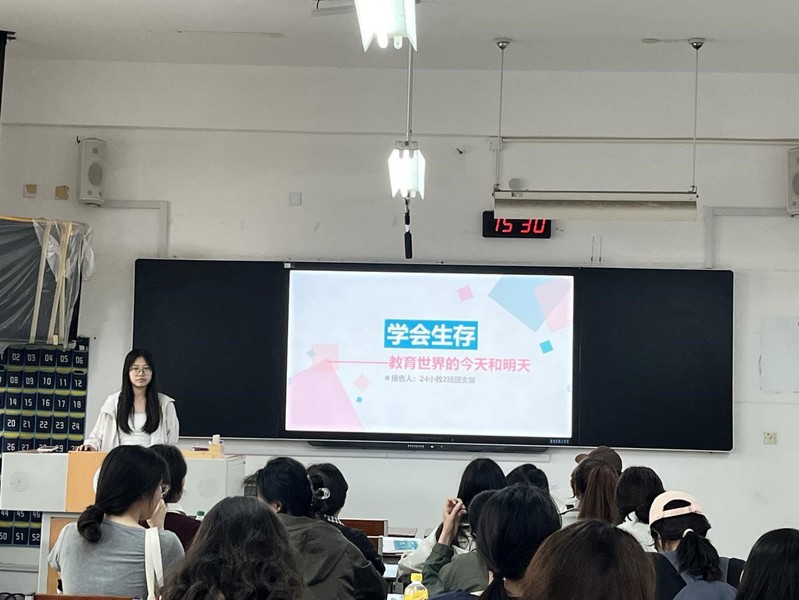活动中,各团支部积极响应,创新活动形式,带来了一场别开生面的领学热潮。有的团支部开展主题班会,以小组研讨的形式,鼓励同学们结合自身学习经历与教育思考,对经典著作观点进行深度剖析。在研讨《学会生存——教育世界的今天和明天》时,同学们围绕教育与生活、公司与社会的关系展开激烈辩论,从书中的“学习化社会”理念出发,探讨现代教育如何打破传统的壁垒与局限,实现教育与社会生活的深度融合。现场气氛热烈,思维火花不断碰撞,闪烁着智慧的光芒。同时,团支部还组织观看与著作相关的视频资料,如播放以陶行知教育实践为背景的纪录片,帮助同学们多维度理解著作中所蕴含的教育思想与实践案例,使同学们深切体会到教育事业不仅意义重大、使命崇高,同时充满了挑战,进而更加坚定了努力奋进、涵养品格的决心。