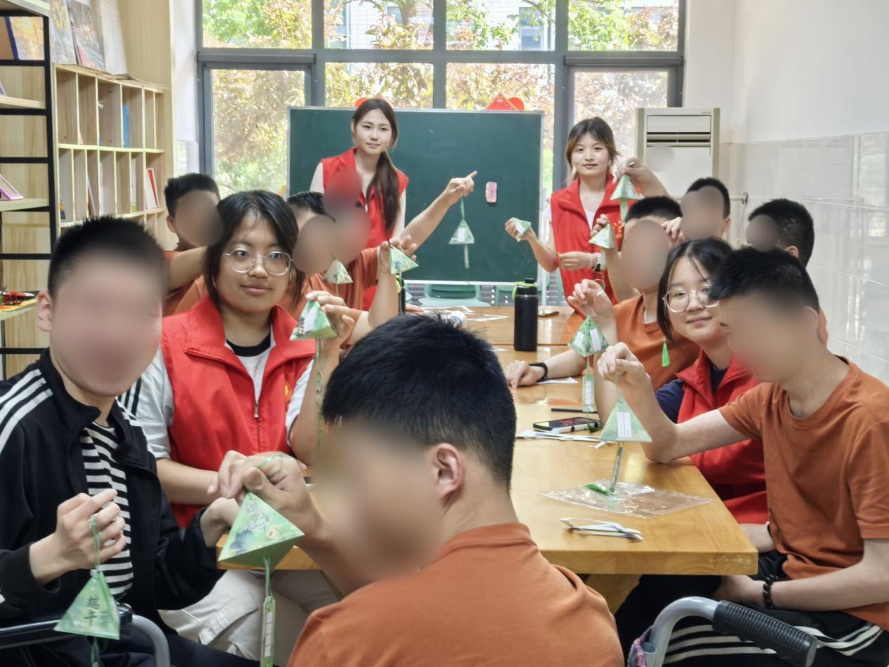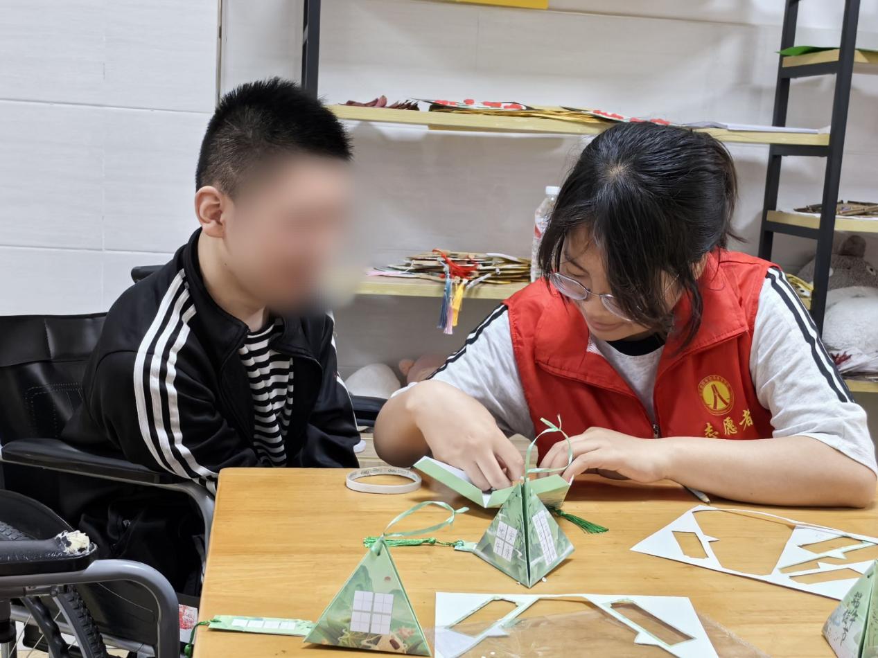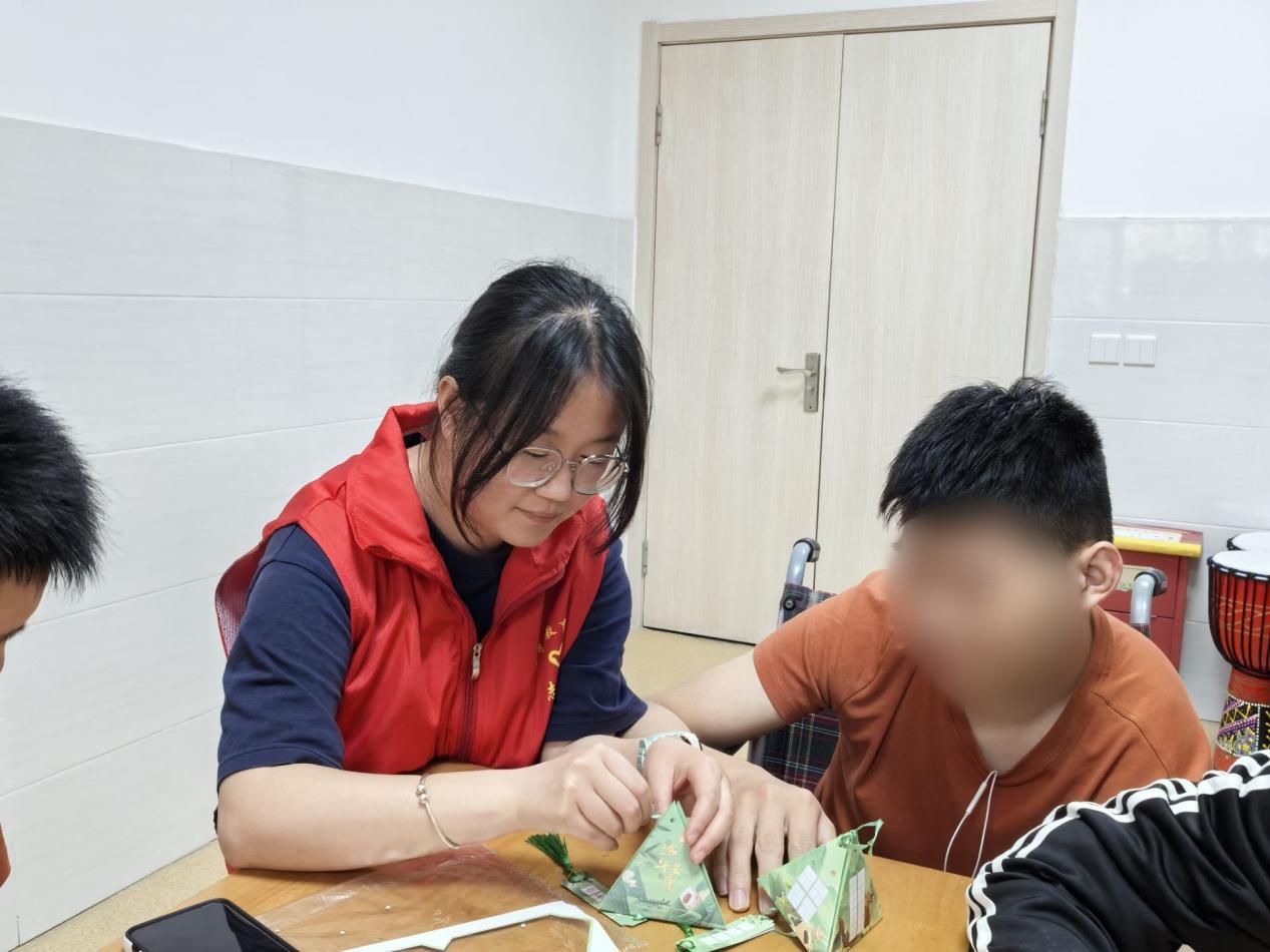 5月21日,在端午节来临之际,谈球吧志愿者走进连云港市社会福利中心,开展“非遗启智行动之手工粽子制作”主题课堂。志愿者与特殊儿童以彩纸为媒、以指尖为介,在折叠剪裁间传承端午民俗,用创意纸粽搭建起传统文化与童心世界的桥梁。