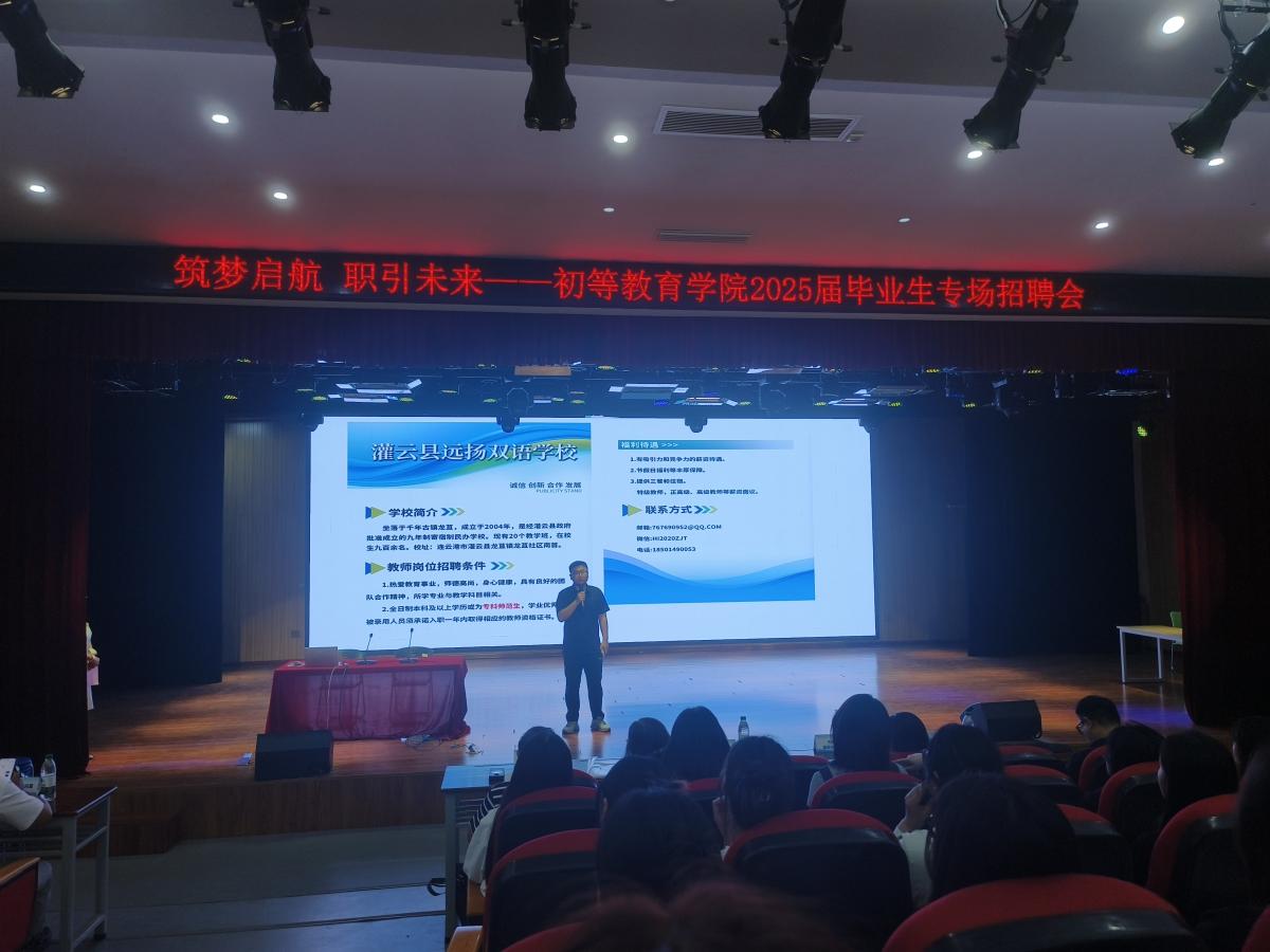 为切实做好毕业生就业工作,搭建招聘单位与毕业生双向选择平台,6月10日,谈球吧2025届毕业生专场招聘会在智贤楼小剧场顺利举行。此次招聘会吸引了连云港市东海县蔷薇初级中学、连云港市灌云县远扬双语公司、连云港市陇海教育培训中心、连云港方维文化传播有限公司、连云港凤瑞托管服务有限公司、连云港小状元托管有限公司、中国人寿股份有限公司、连云港银丰食用菌科技有限公司、连云港海州区丽景信息咨询工作室和中国移动通信集团等10家单位参与,提供以小学教育和婴幼儿托育服务与管理为主的岗位共计132个,谈球吧、文公司和数学与信息公司的毕业生踊跃参会。