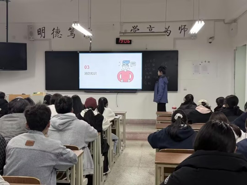 各班级结合校园实际与生活场景设计消防安全宣讲内容。有的班级通过播放火灾案例视频、解读事故数据,直观展现火灾危害,引导员工摒弃侥幸心理,深刻认识消防安全的重要性。有的班级重点剖析宿舍违规使用大功率电器、私拉乱接电线等常见隐患,引导员工自查自纠。有的班级重点讲解灭火器“提、拔、握、压”使用口诀和消防栓操作方法,传授火灾初期扑救技巧以及讲解弯腰捂鼻、不乘电梯、沿安全通道撤离等逃生要点,明确逃生禁忌。部分班级还开展了模拟逃生和灭火器实操演练,让员工将理论知识转化为实践能力。此外,公司结合秋冬火灾易发特点,提醒员工离开宿舍及时断电、妥善存放易燃易爆物品,倡导员工主动学习消防知识,争当校园消防安全宣传员。